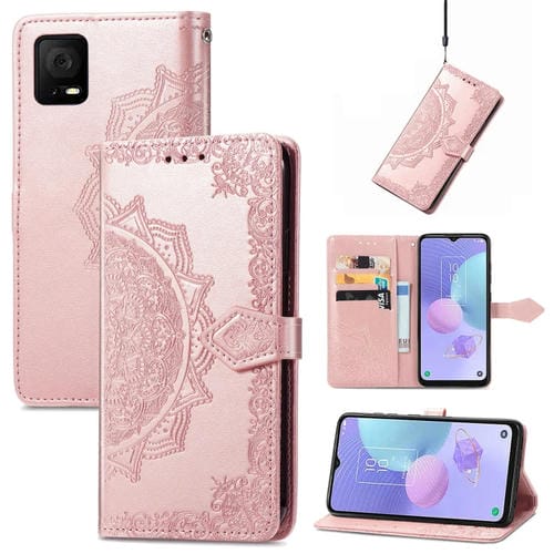 Funda de Cuero para TCL 405 Mandala Flower en Relieve (Oro Rosa)
