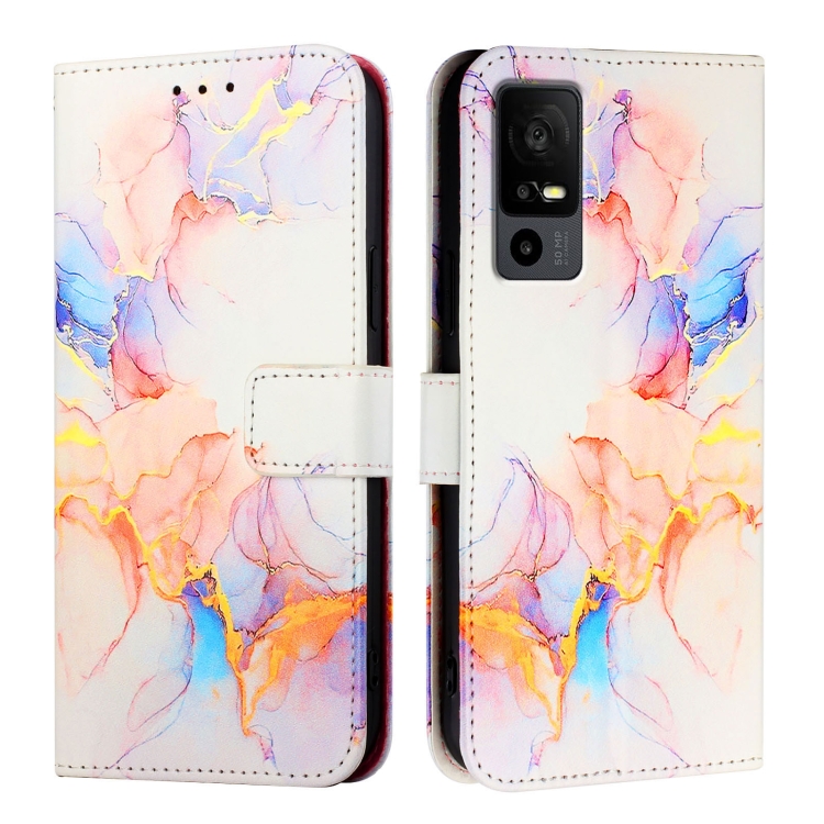 Funda de Cuero con Tapa para Tcl 40R 5G Pt003 con Patrón Mármol (Blanco)