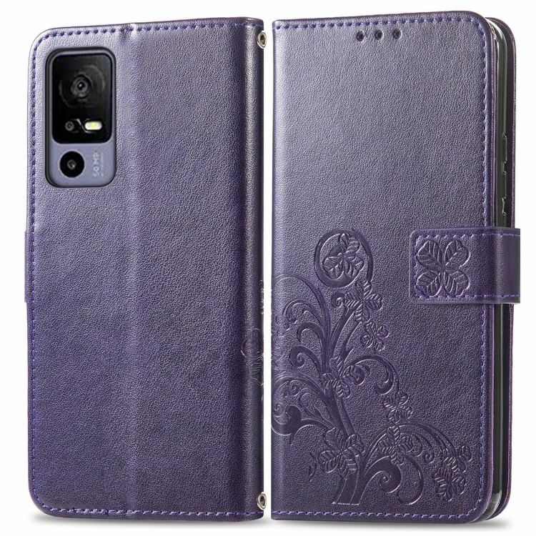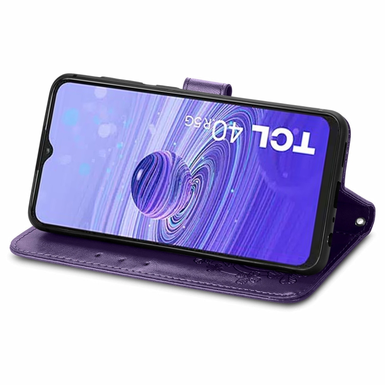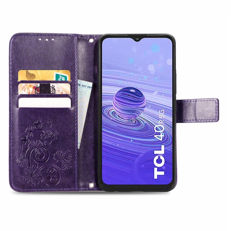 Estuche para TCL 40R de Cuero con Hebilla en Relieve y Cierre de Cuatro Hojas (Púrpura)