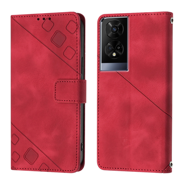 Funda de Cuero para TCL 50 Xe Skin Feel en Relieve (Rojo)