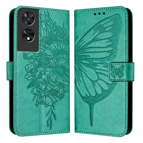 Funda de Cuero para TCL 505 con Mariposa en Relieve (Verde)