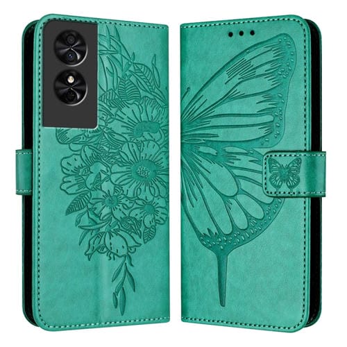 Funda de Cuero para TCL 505 Se con Mariposa en Relieve (Verde)