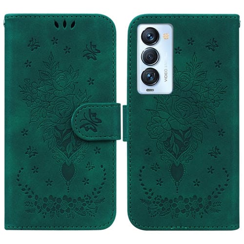 Funda para Tecno Camon 18 Gran Butterfly Rose Foothip en Relieve de Cuero (Verde)