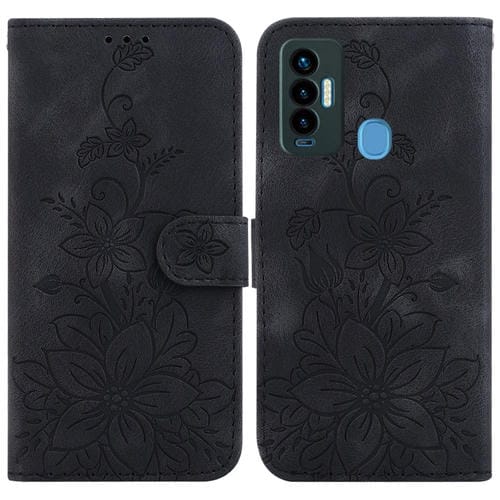 Funda de Cuero en Relieve para Tecno Camon 18I Lily para Teléfono (Negro)