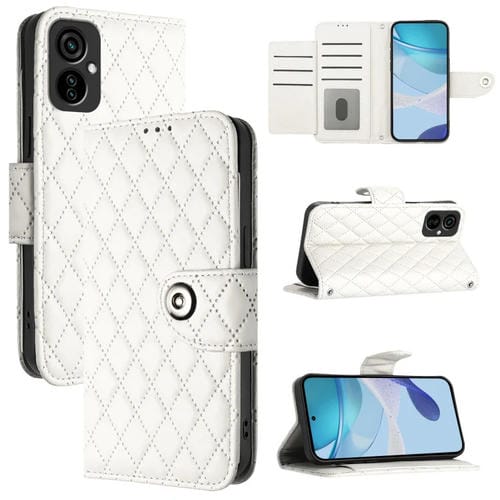 Funda de Cuero para Tecno Camon 19 Neo con Tapa Textura Rombal y Cordón (Blanco)
