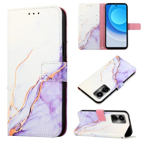 Funda de Cuero con Tapa para Tecno Camon 19 Pt003 Patrón Mármol (Blanco Púrpura)