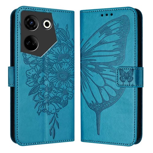 Funda de Cuero para Tecno Camon 20/20 Pro 4G con Mariposa en Relieve (Azul)