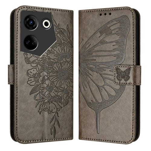 Funda de Cuero para Tecno Camon 20/20 Pro 4G con Mariposa en Relieve (Gris)