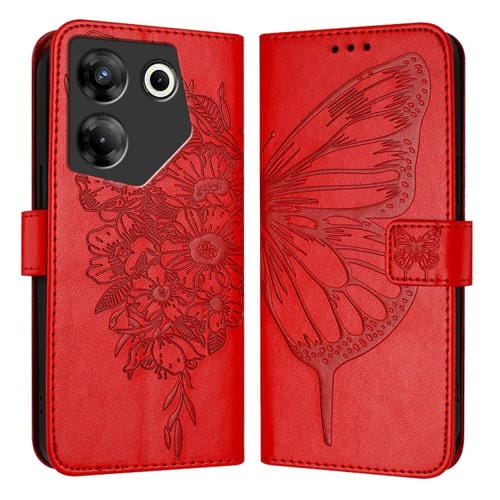 Funda de Cuero para Tecno Camon 20 Pro 5G con Mariposa en Relieve (Rojo)