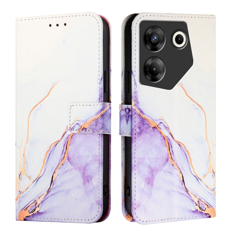 Funda para Tecno Camon 20 Pro 5G Pt003 Cuero con Tapa y Patrón Mármol (Blanco y Morado)
