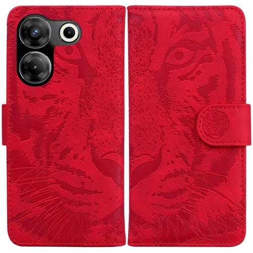 Funda de Cuero Flip para Tecno Camon 20 Pro 5G Tiger Embossing Pattern (Rojo)