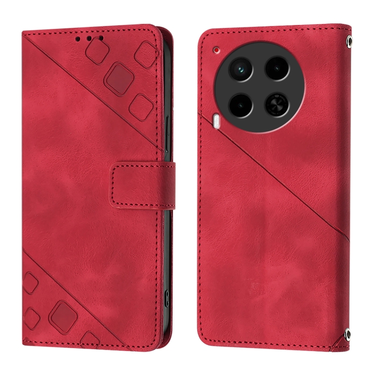 Funda de Cuero para Tecno Camon 30 4G y 5G Skin Feel En Relieve (Rojo)