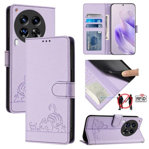 Funda para Tecno Camon 30 Premier 5G Cl9 Cat Rat Cuero Rfid con Patrón y Cordón (Púrpura)