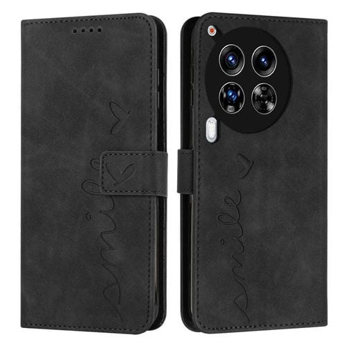 Funda de Cuero para Tecno Camon 30 Premier Skin Feel Heart con Relieve y Cordón Largo (Negro)