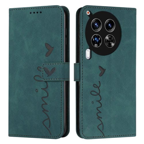 Funda para Tecno Camon 30 Premier Skin Feel Heart de Cuero con Cordón Largo (Verde)