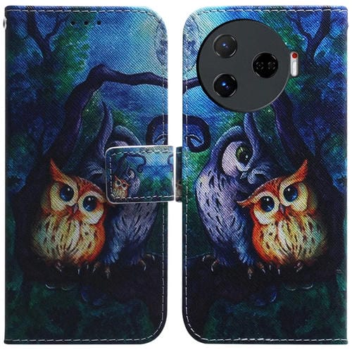 Funda de Cuero para Tecno Camon 30 Pro Cl8 con Tapa y Dibujo Coloreado (Búho)