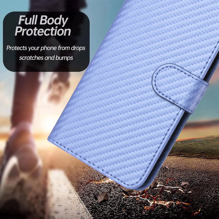 Funda de Cuero para Tecno Camon 30 Pro Yx0070 con Hebilla de Fibra de Carbono y Cordón (Púrpura Claro)