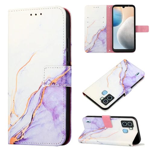 Funda de Cuero con Tapa para Tecno Pop 6 Pt003 Patrón Mármol (Blanco Púrpura)