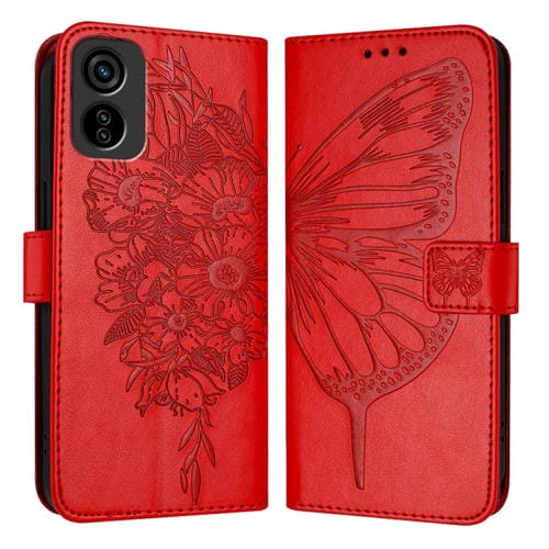 Funda de Cuero para Tecno Pop 6C y Itel A18 con Mariposa en Relieve (Rojo)