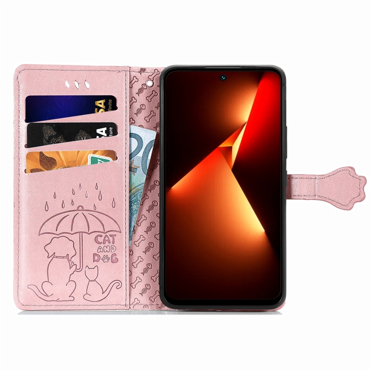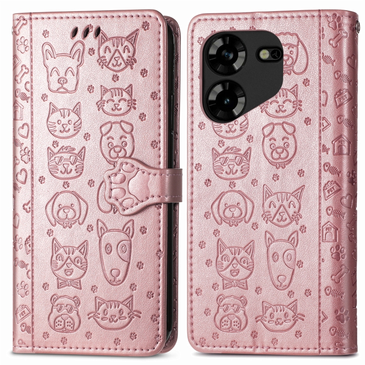 Funda de Cuero para Tecno Pova 5 4G con Relieve Perros y Gatos (Oro Rosa)