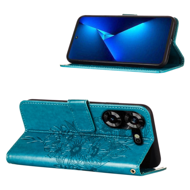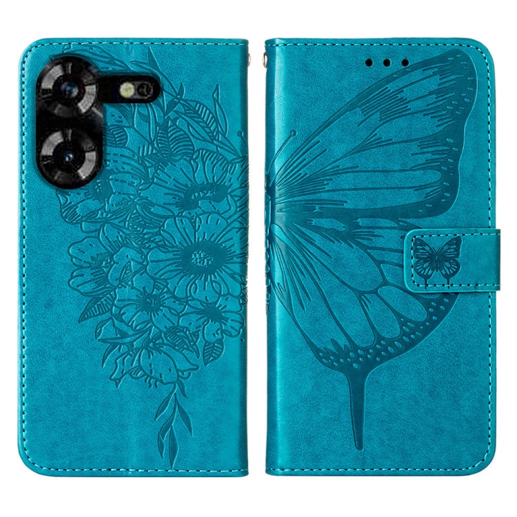 Estuche para Teléfono Tecno Pova 5 4G Lh7N Cuero Mariposa En Relieve (Azul)