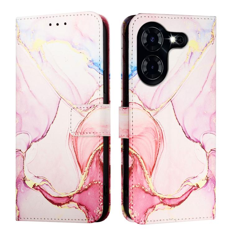 Funda de Cuero con Tapa para Tecno Pova 5 4G Pt003 con Patrón de Mármol (Oro Rosa)
