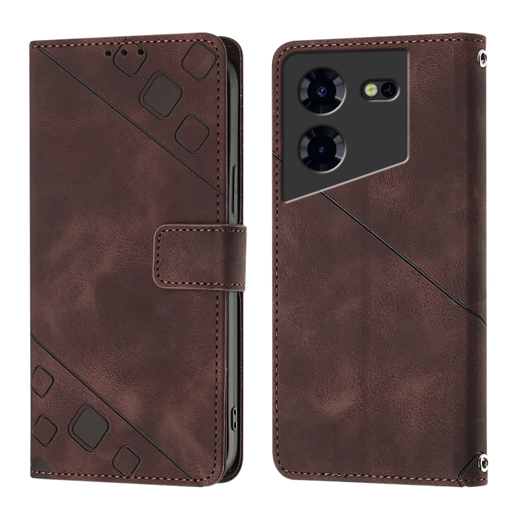 Funda de Cuero para Tecno Pova 5 4G Skin Feel en Relieve (Marrón)