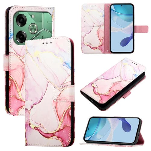 Funda de Cuero para Tecno Pova 6 4G Pt003 con Tapa y Patrón de Mármol (Oro Rosa)