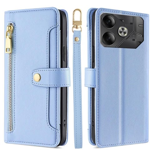 Funda de Cuero para Tecno Pova 6 5G con Billetera y Cremallera (Azul)