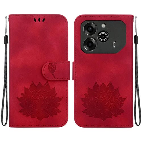 Funda de Cuero para Tecno Pova 6 y Pova 6 Pro con Relieve Lotus (Rojo)