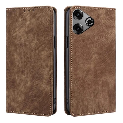 Funda de Cuero Magnética para Tecno Pova 6 Pro 5G con Rfid y Cepillo Antirrobo (Marrón)