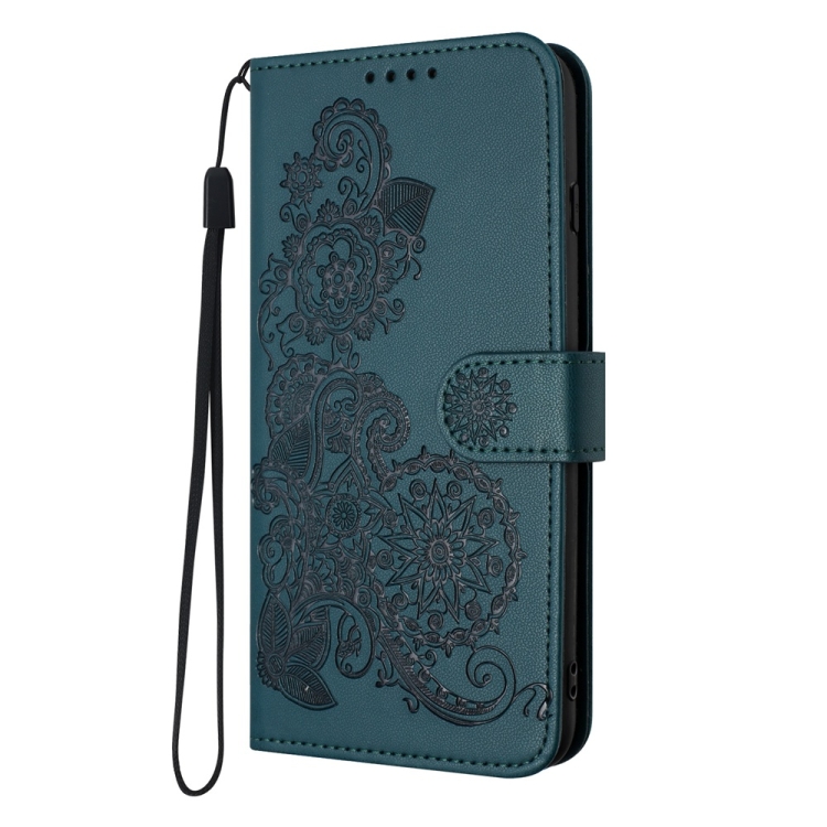 Funda de Cuero para Tecno Pova 6 Pro Datura Flower con Tapa en Relieve (Verde Oscuro)