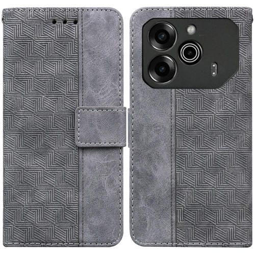 Funda de Cuero para Tecno Pova 6 Pro y Pova 6 con Relieve Geométrico (Gris)