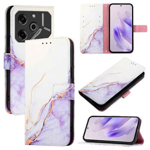 Funda de Cuero con Tapa para Tecno Pova 6 Pro Pt003 con Patrón de Mármol (Blanco y Morado)