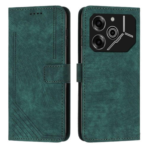 Funda de Cuero para Tecno Pova 6 Pro con Patrón de Rayas y Cordón Largo (Verde)