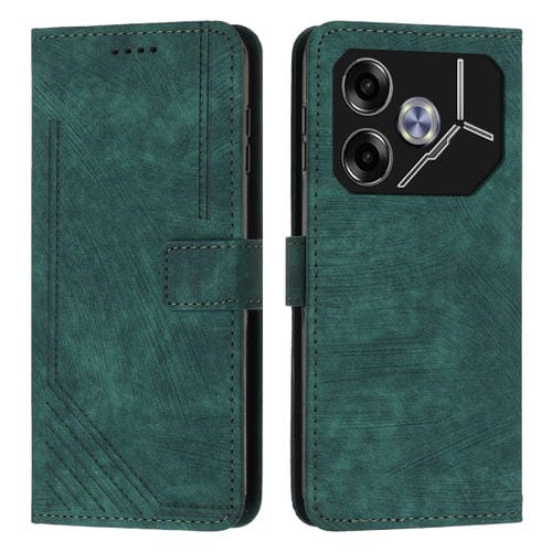 Funda de Cuero para Tecno Pova 6 con Patrón de Rayas y Cordón Largo (Verde)