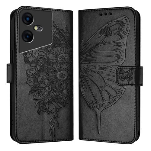 Funda de Cuero para Tecno Pova Neo 3 con Mariposa en Relieve (Negro)
