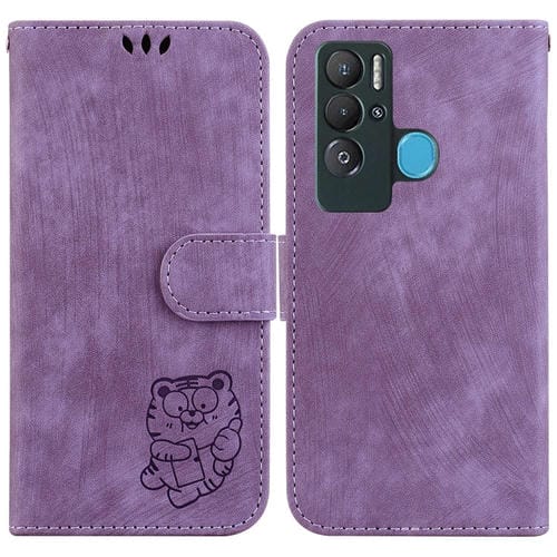 Funda de Cuero para Tecno Pova Neo Le6 Little Tiger en Relieve (Púrpura)