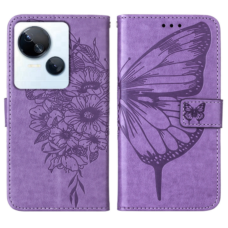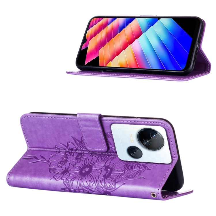 Estuche para teléfono Tecno Spark 10 5G K18 cuero mariposa en relieve (Púrpura Claro)