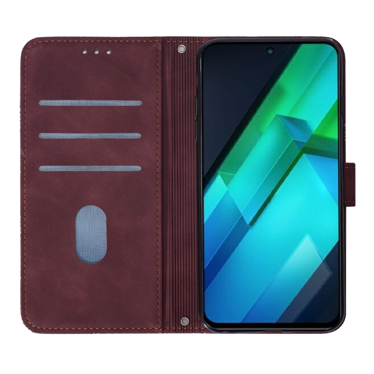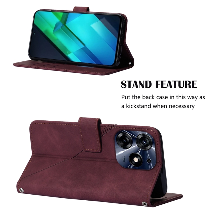 Funda de Cuero Flip 3D para Tecno Spark 10 Pro y Ki7 Crossbody (Rojo Vino)