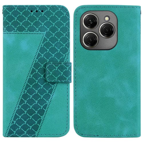 Funda de Cuero para Tecno Spark 20 Pro con Relieve en Forma de 7 (Verde)