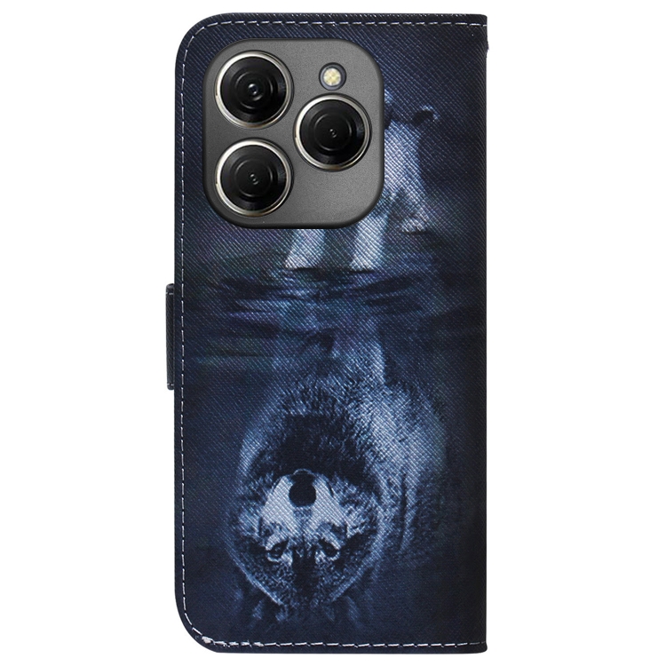 Funda de Cuero para Tecno Spark 20 Pro con Tapa y Dibujo Coloreado (Lobo y Perro)