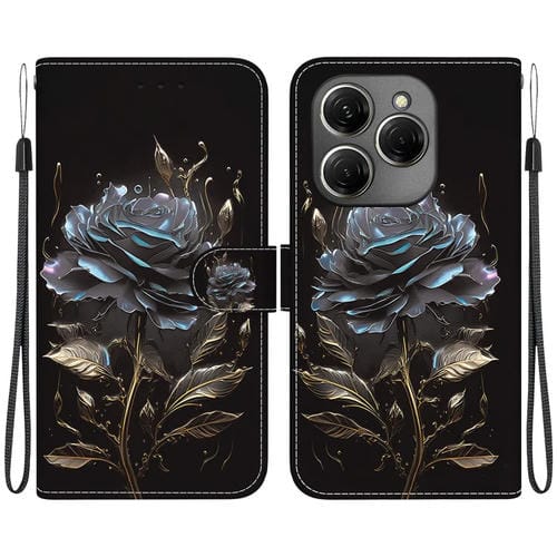 Funda de Cuero para Tecno Spark 20 Pro con Dibujo Coloreado y Textura de Cristal (Rosa Negra)