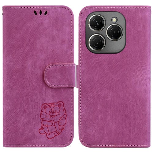 Funda de Cuero para Tecno Spark 20 Pro Little Tiger en Relieve (Rojo Rosa)