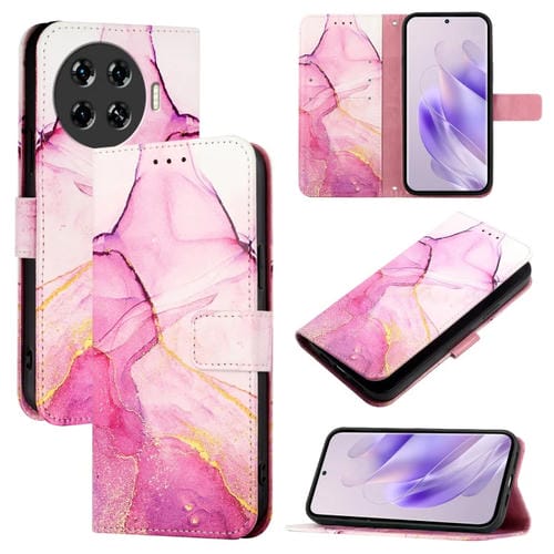 Funda de Cuero con Tapa para Tecno Spark 20 Pro Pt003 con Patrón Mármol (Rosa, Morado y Dorado)
