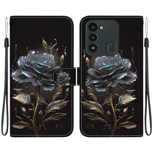 Funda para Tecno Spark Go 2022 / 8C de Cuero con Dibujo Coloreado y Textura de Cristal (Rosa Negra)
