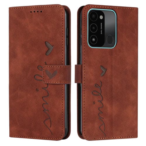 Funda para Tecno Spark Go 2022 con patrón Heart de Cuero (Marrón)