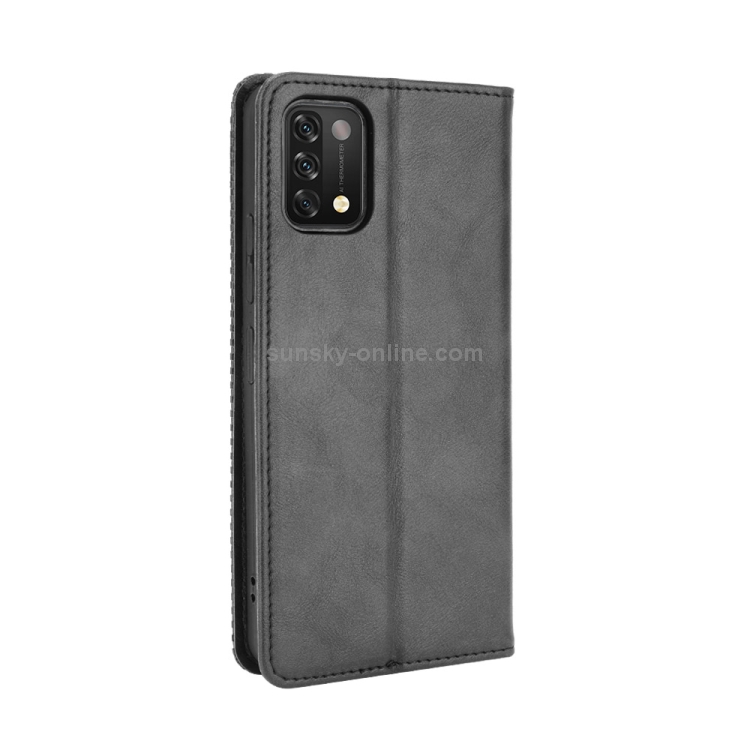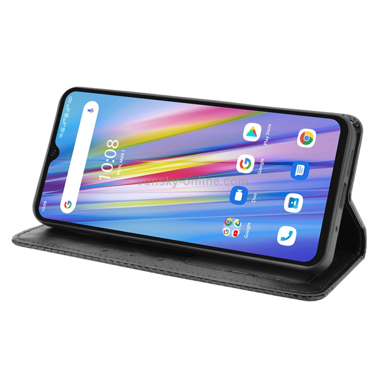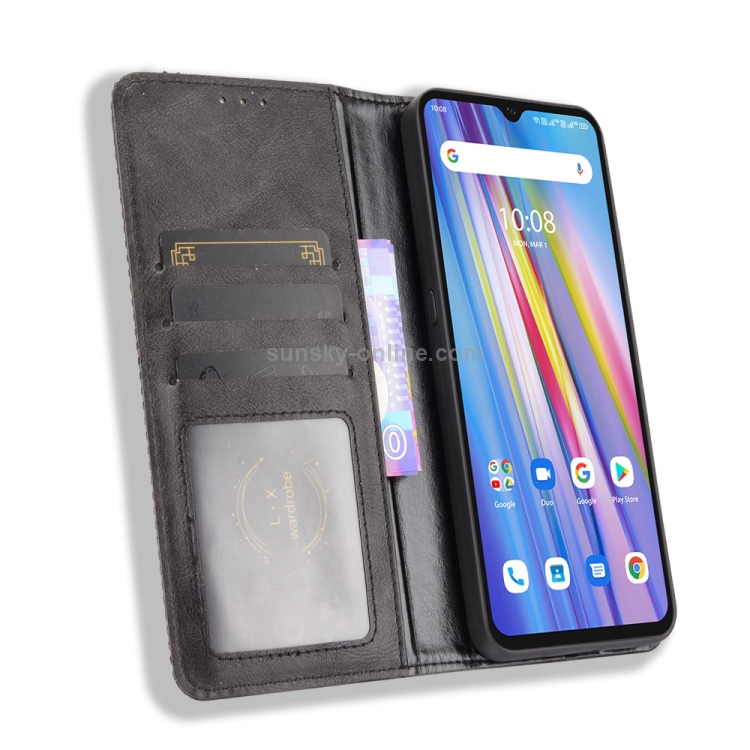 Funda de Cuero para Umidigi A11 con Hebilla Magnética, Soporte, Ranuras para Tarjetas y Marco de Fotos (Negro)