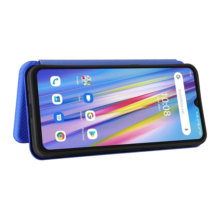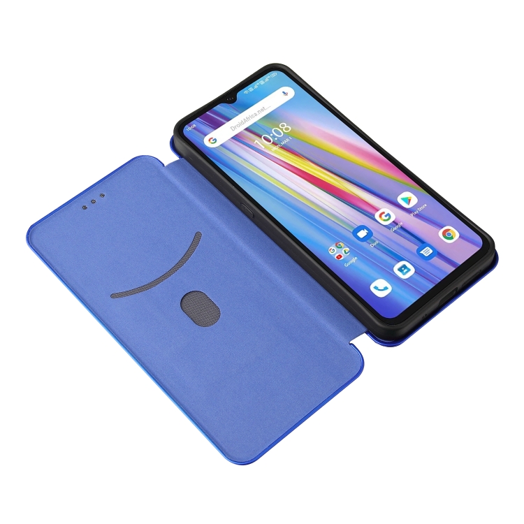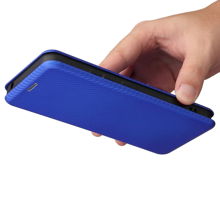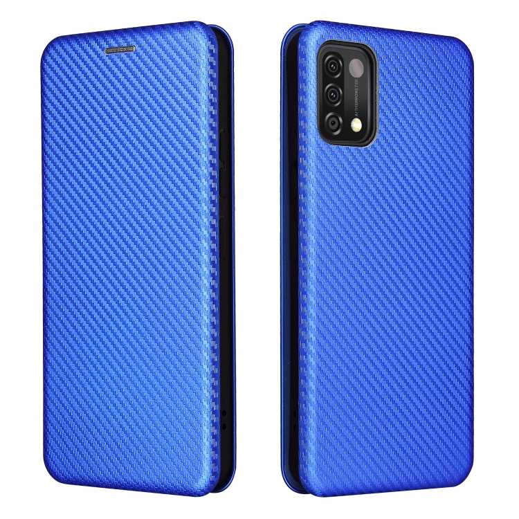 Funda para Umidigi A11 Textura de Fibra de Carbono Magnética Horizontal Flip TPU + PC con Ranura para Tarjeta (Azul)