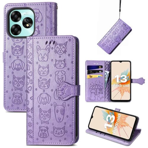 Funda para Teléfono Umidigi A15C Cuero con Relieve de Perro y Gato (Púrpura)